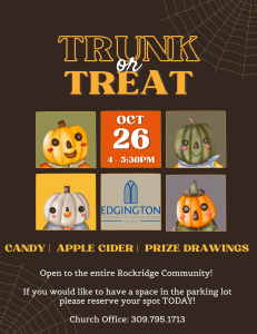 Open to the entire Rockridge Community! Please bring your kids and be blessed with lots of candy, apple cider, and prizes!