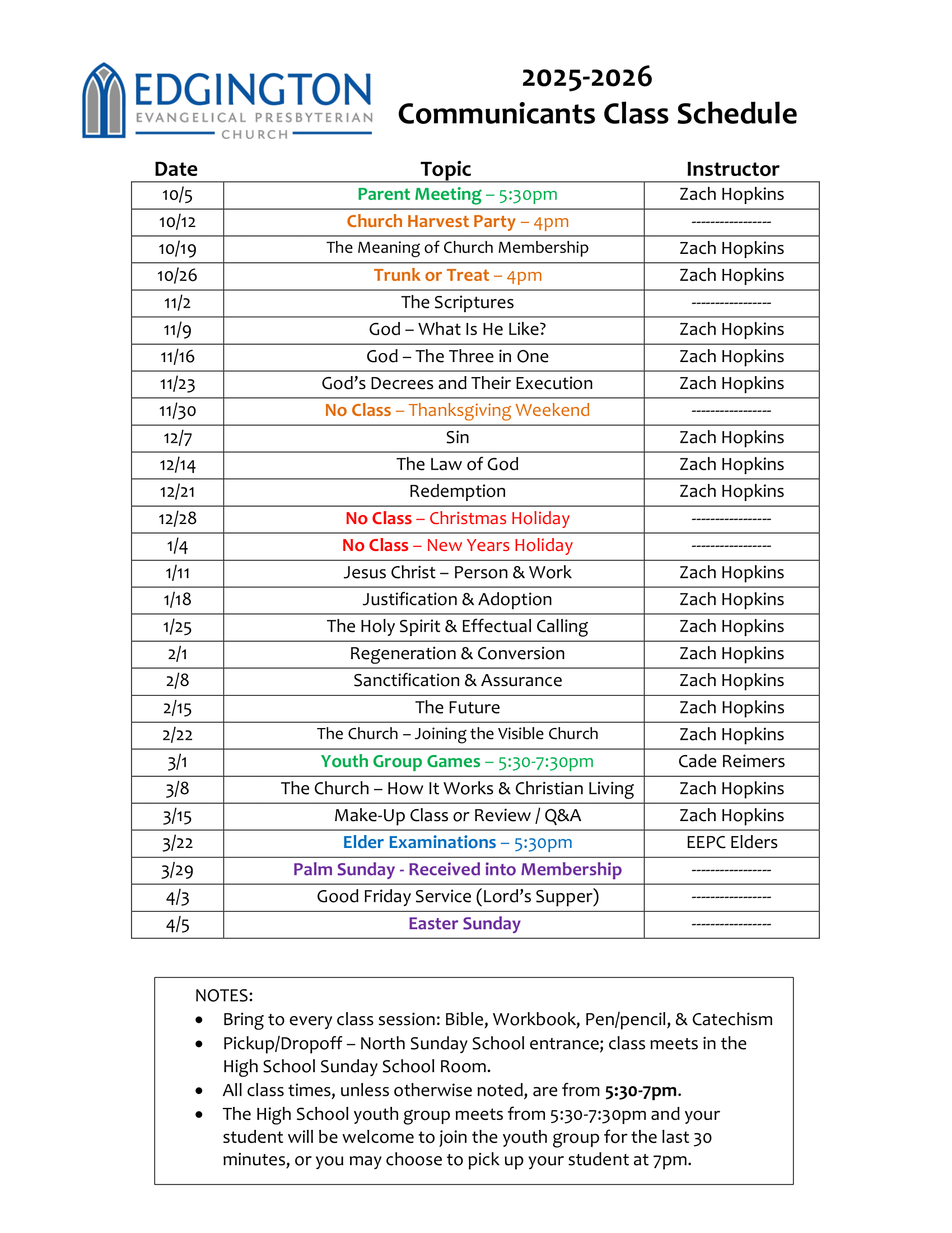 If your 7th, 8th, or 9th grade child is interested in joining the church, please keep Sunday evenings from 5:30 - 7pm open starting October 5th.